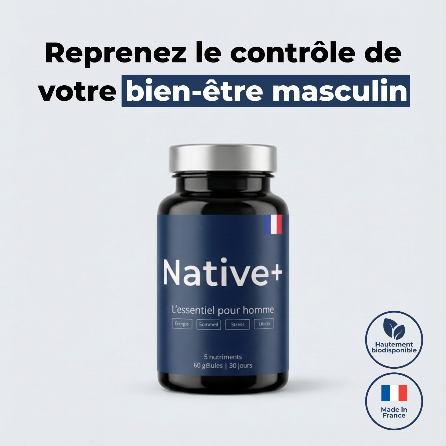 Il a alors créé NATIVE+ : une réponse naturelle, cohérente et rigoureusement développée avec des experts français, pour aider les hommes à retrouver stabilité, clarté et énergie.